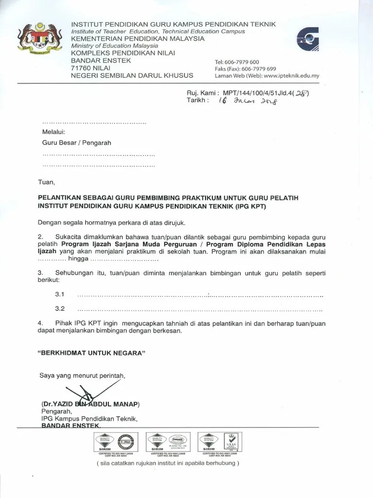 Kamal sabaruddin · surat perlantikan pbs. 5 surat lantikan guru penasihat bsmm. Ia juga dianggap sebagai jaminan pekerjaan atau penempatan.